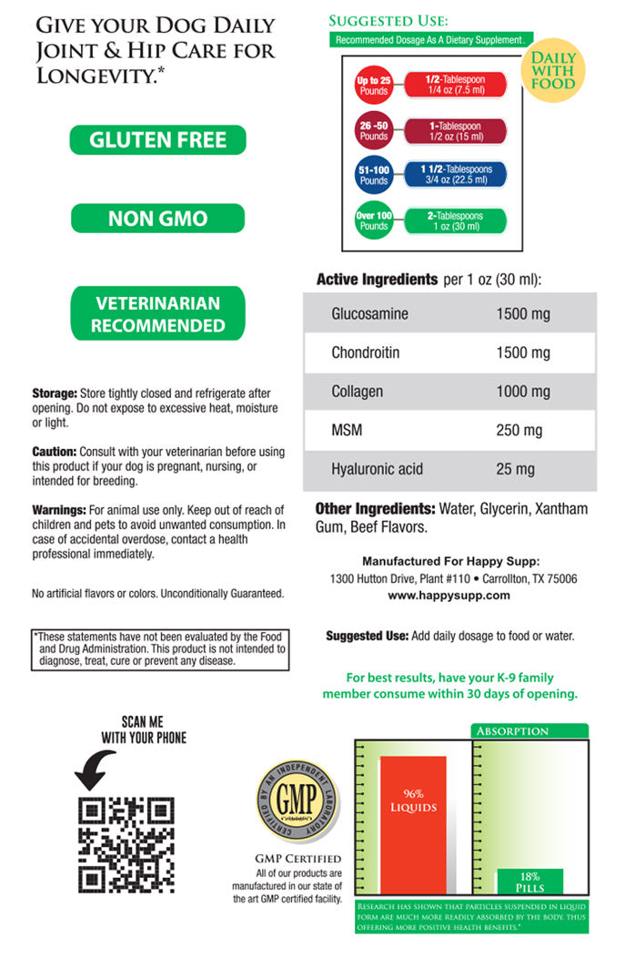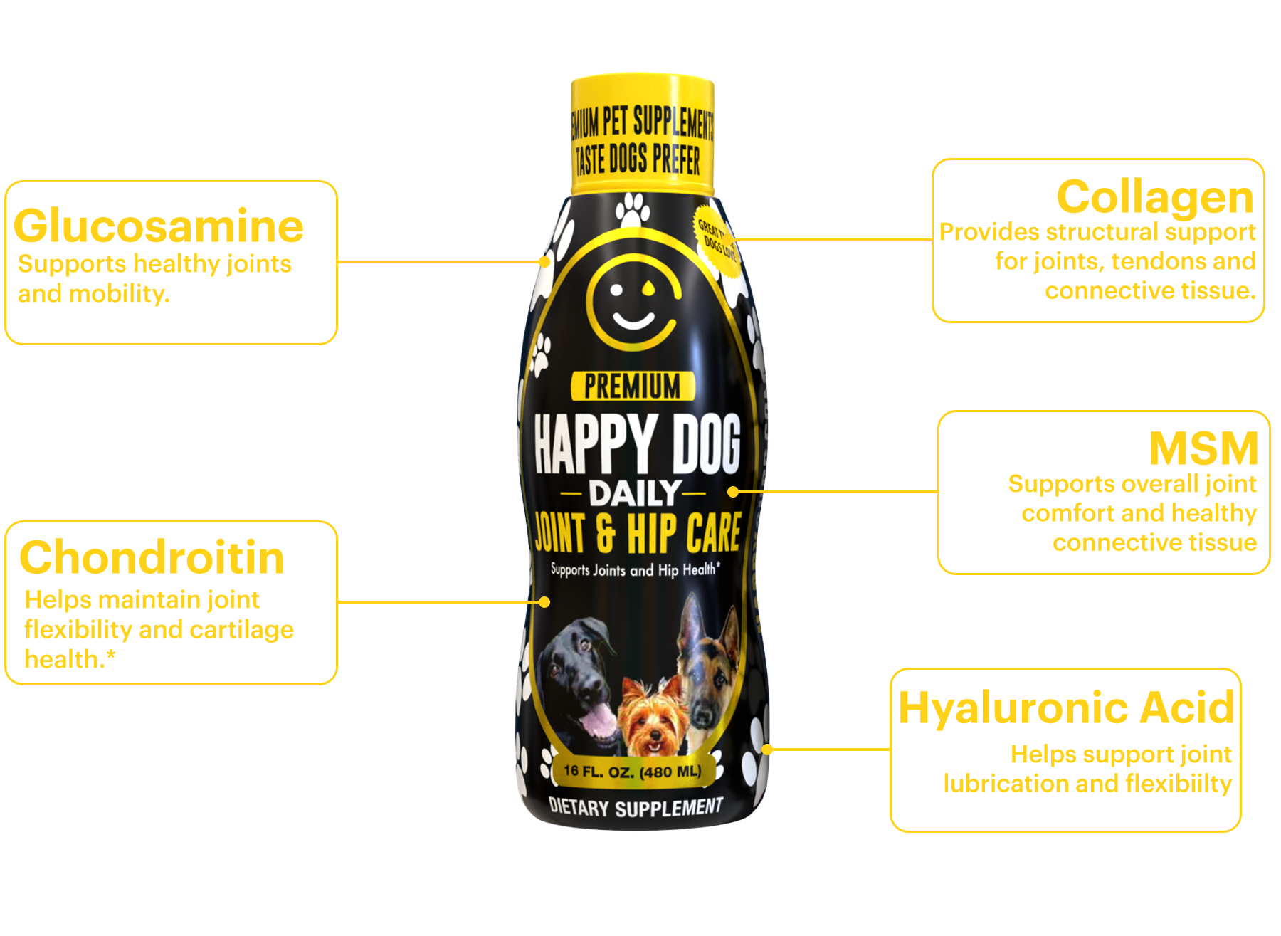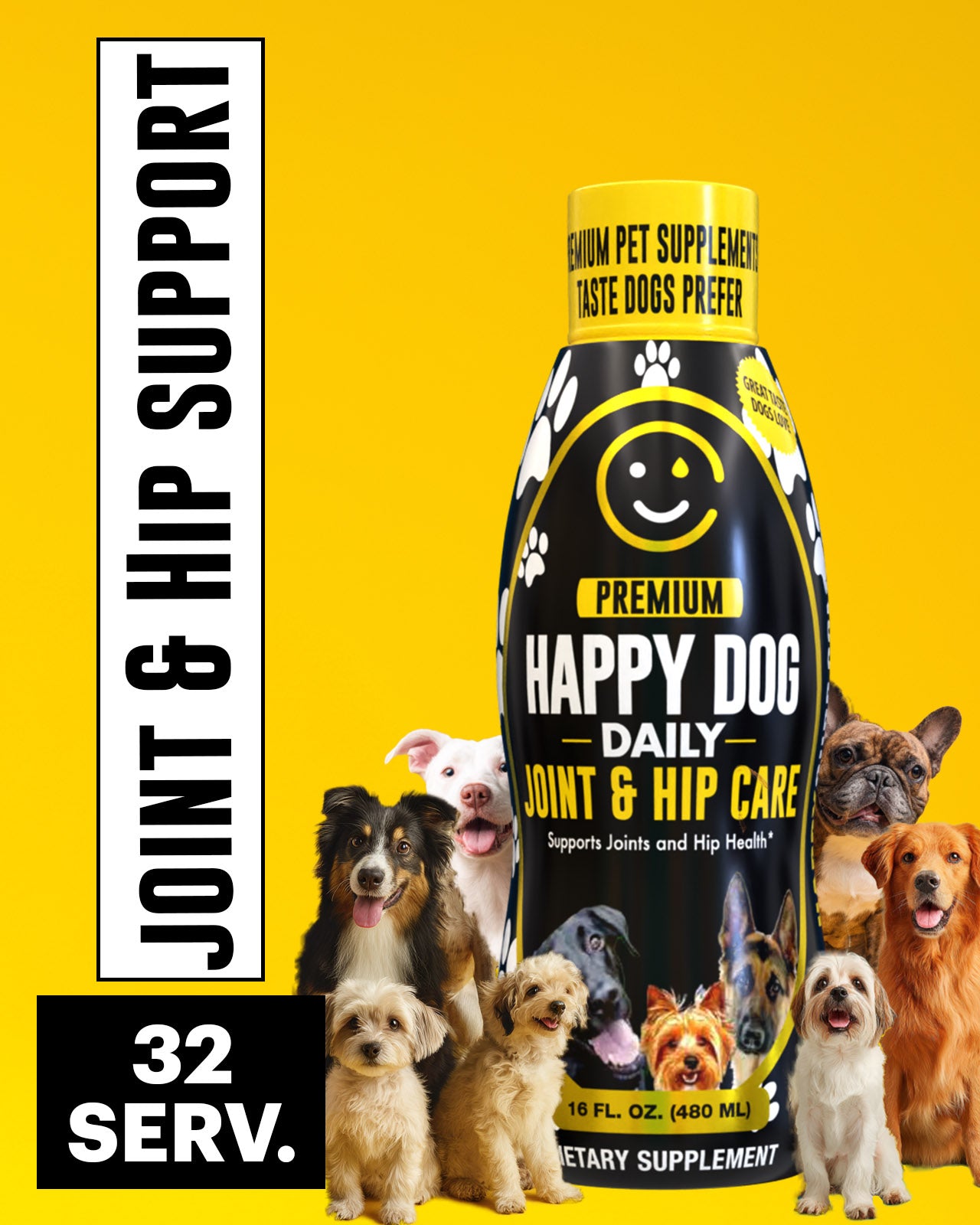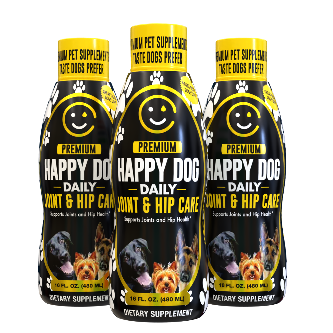 Happy Dog Vitamins are liquid, meaning they absorb faster and more effectively than pills or powders. Each serving delivers essential nutrients your dog actually absorbs — without fillers, artificial colors, or hard-to-digest binders. It’s an easy, daily boost for healthier skin, coat, joints, and energy.